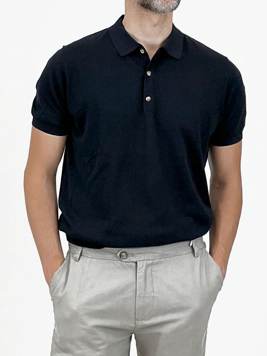 Μαύρο πόλο από μετάξι και βαμβάκι
