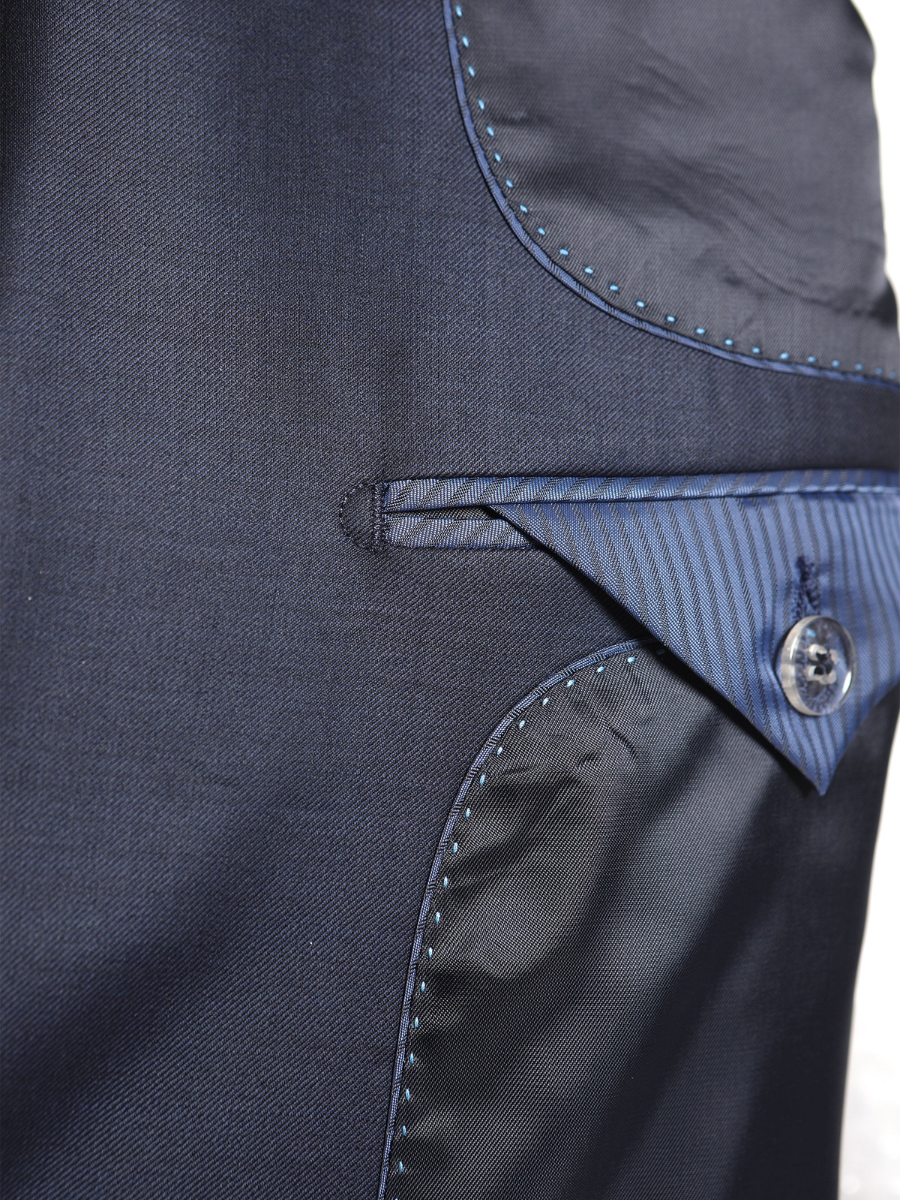 A single breasted jacket with two buttons and two vents.