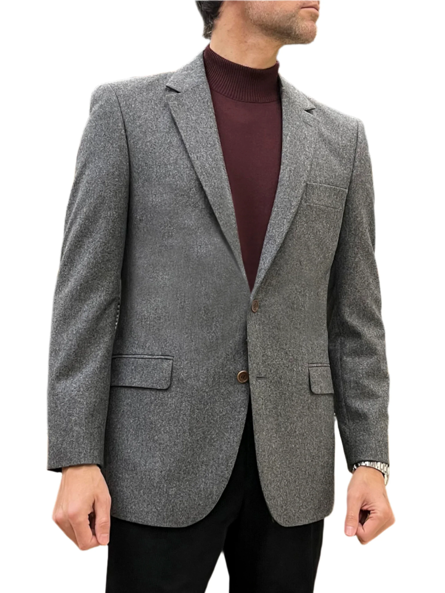 A single breasted jacket with two buttons and two vents.
